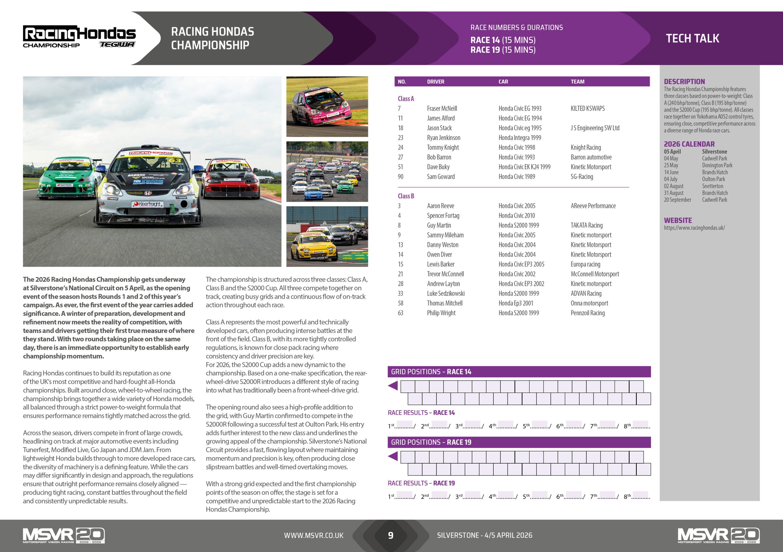 The 2026 Racing Hondas Championship gets underway at Silverstone’s National Circuit on Sunday 5 April, with Event 1 launching the new season.